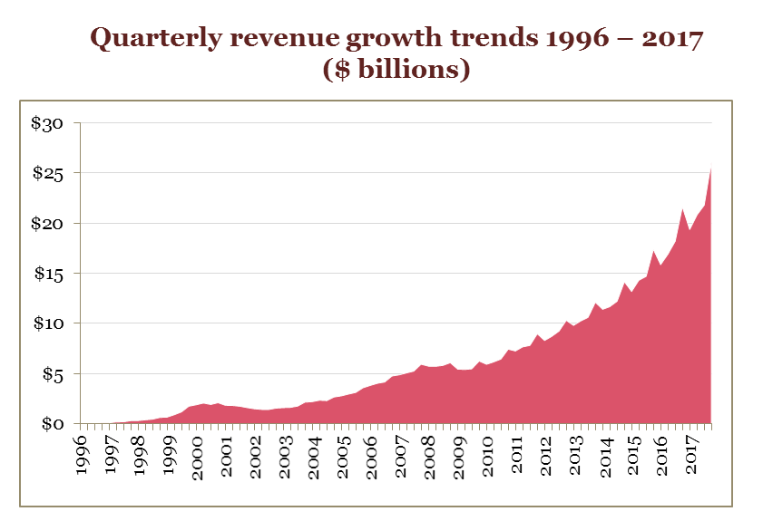 - Search revenues reached nearly $40.6 billion in 2017, up 18% from $34.6 billion in 2016